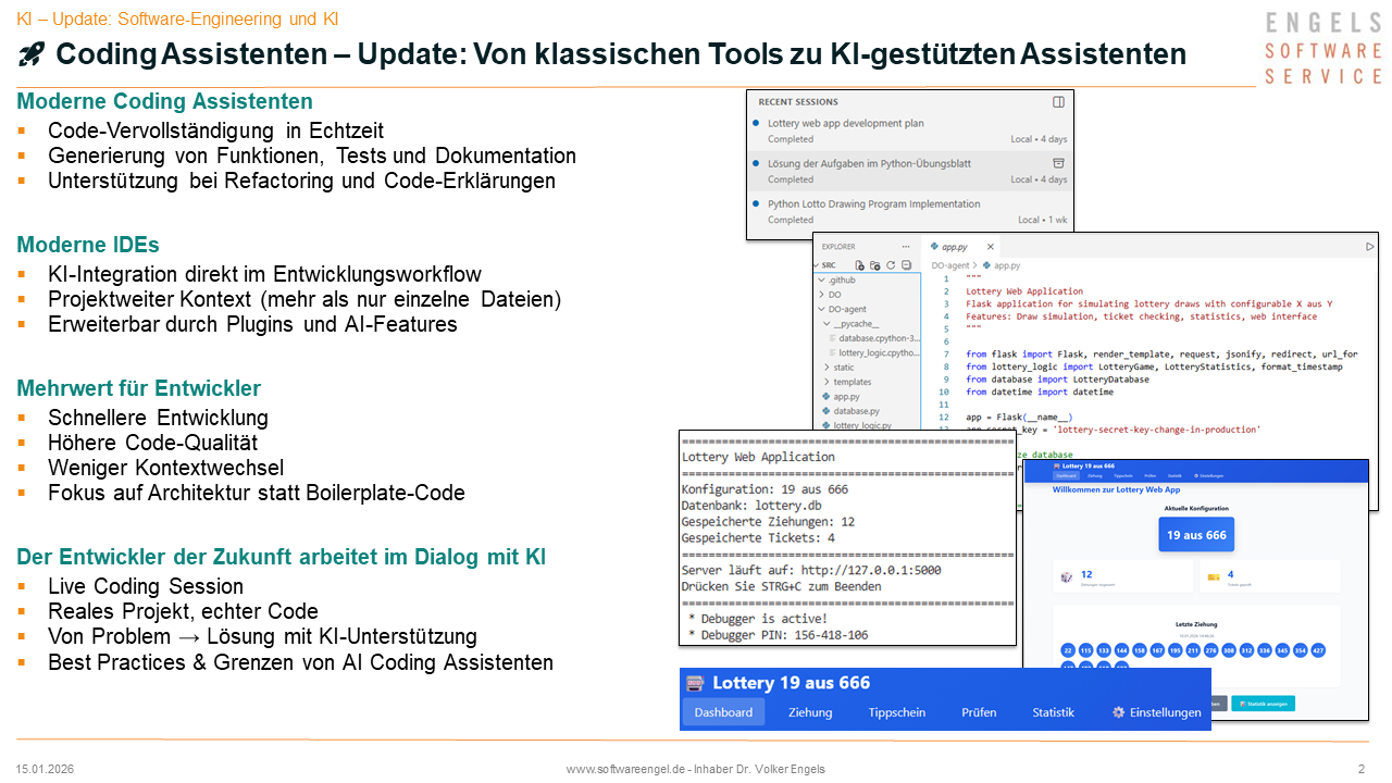 Der Artikel basiert auf den Inhalten der Präsentation „KI-Update: Software-Engineering und KI – Coding Assistenten“ von IB Softwareengel (15.01.2026)