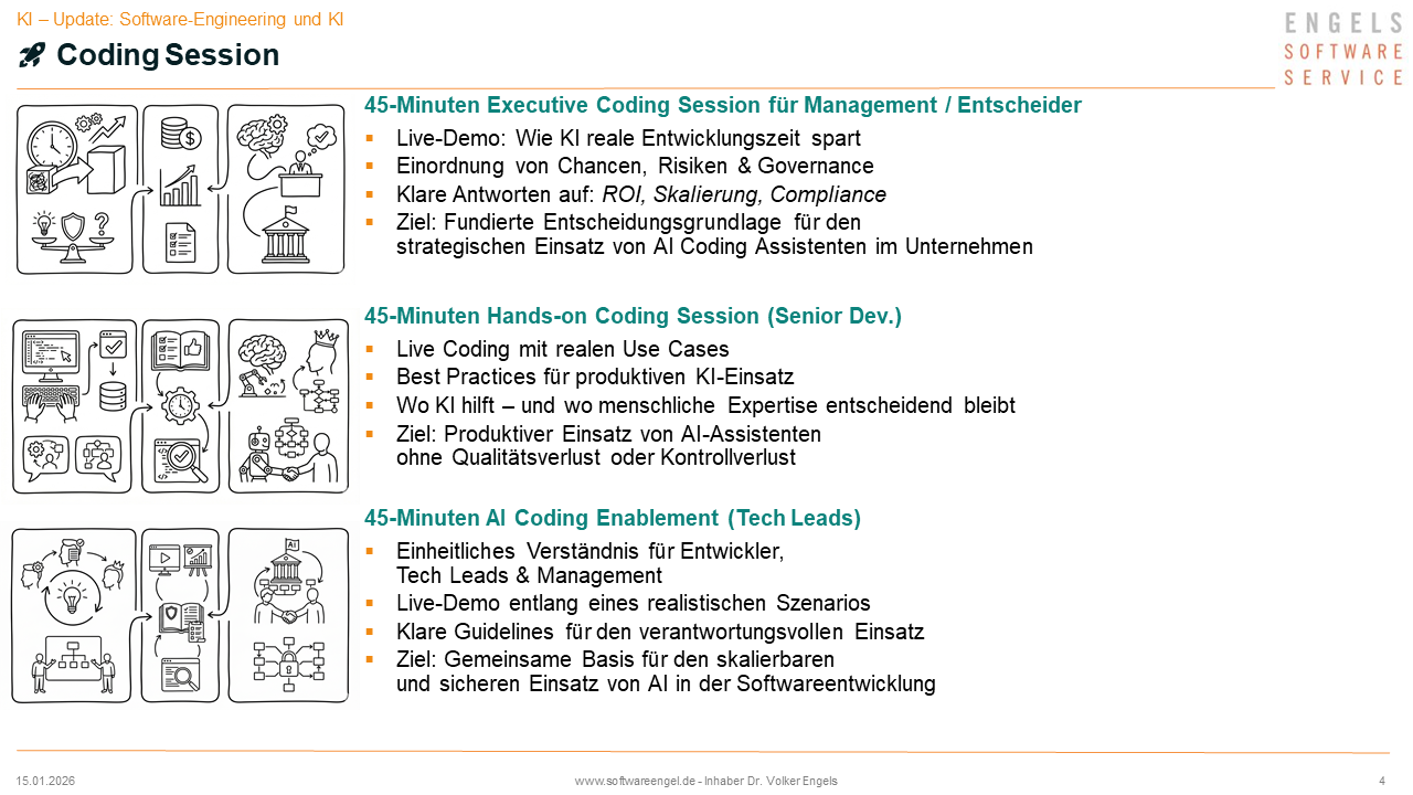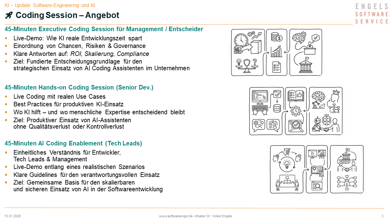 👉 KI im Software Engineering ist kein Tool-Thema – sondern ein Führungs- und Qualitäts-Thema.